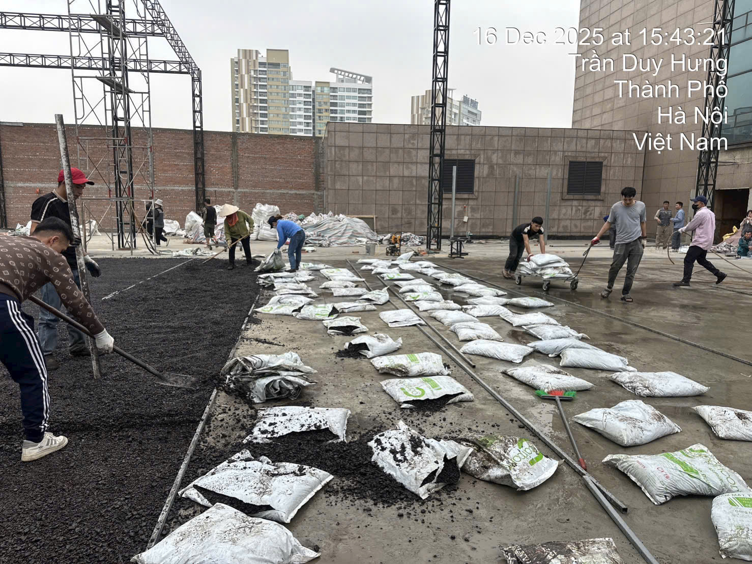 - Dùng xẻng hoặc dụng cụ để dàn đều